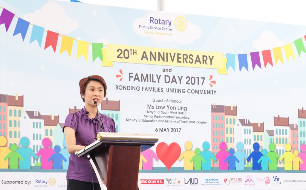 Rotary FSC celebrated its 20th Anniversary and Family Day 2017 on 6 May with funfilled activities for the whole family at West Coast Park. Ms Low Yen Ling, Mayor of South West District and Senior Parliamentary Secretary for MOE and the Ministry of Trade and Industry, was the Guest-of-Honour for the event. As part of the celebrations, Ms Low launched Rotary FSC’s latest initiative – SuperSTUDENTS!